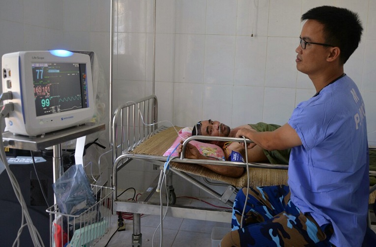 Bác sĩ Bệnh xá đảo Song Tử Tây chăm sóc y tế cho bệnh nhân Đỗ Văn Thành.