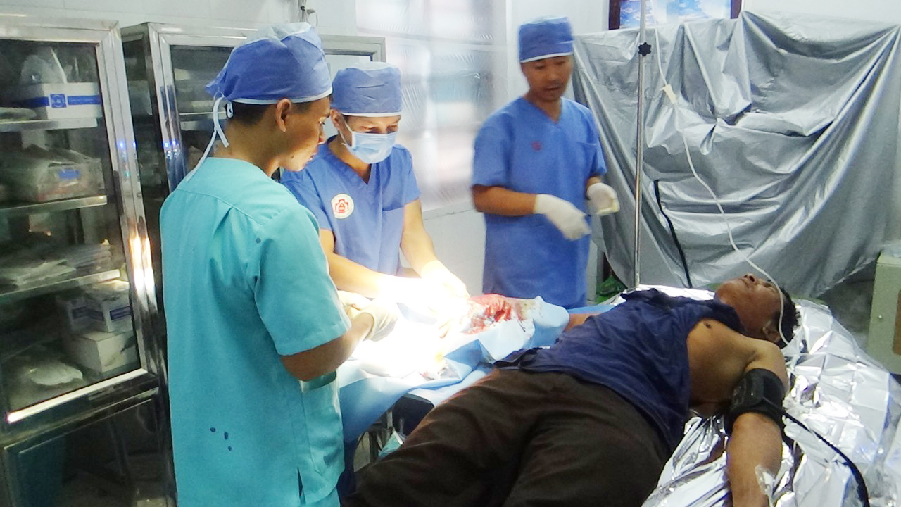 Các y, bác sĩ Bệnh xá đảo Song Tử Tây phẫu thật cho Bệnh nhân Khương