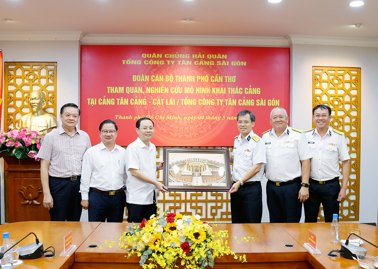 Sáng 4/5, đồng chí Nguyễn Văn Hiếu, Ủy viên dự khuyết Ban Chấp hành Trung ương Đảng, Bí thư Thành ủy TP. Cần Thơ cùng đoàn công tác của thành phố đến tham quan, nghiên cứu mô hình khai thác cảng biển tại cảng Tân cảng - Cát Lái thuộc Tổng công ty (TCT) Tân cảng Sài Gòn (TCSG). Đại tá Nguyễn Năng Toàn, Bí thư Đảng ủy, Chủ tịch TCT chủ trì tiếp đoàn.