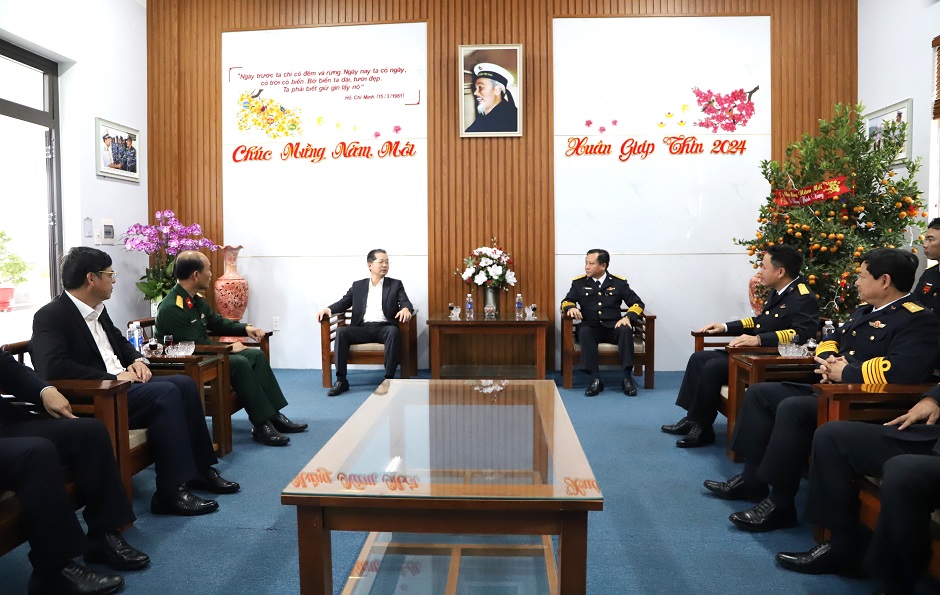 Sau khi nghe Thượng tá Nguyễn Văn Tư, Lữ đoàn trưởng Lữ đoàn 161 báo cáo kết quả thực hiện nhiệm vụ quân sự, quốc phòng và công tác chuẩn bị đón tết Nguyên đán Giáp Thìn 2024, đồng chí Nguyễn Văn Quảng bày tỏ vui mừng và đánh giá cao những kết quả trong thực hiện nhiệm vụ bảo vệ chủ quyền biển, đảo của đơn vị năm 2023.