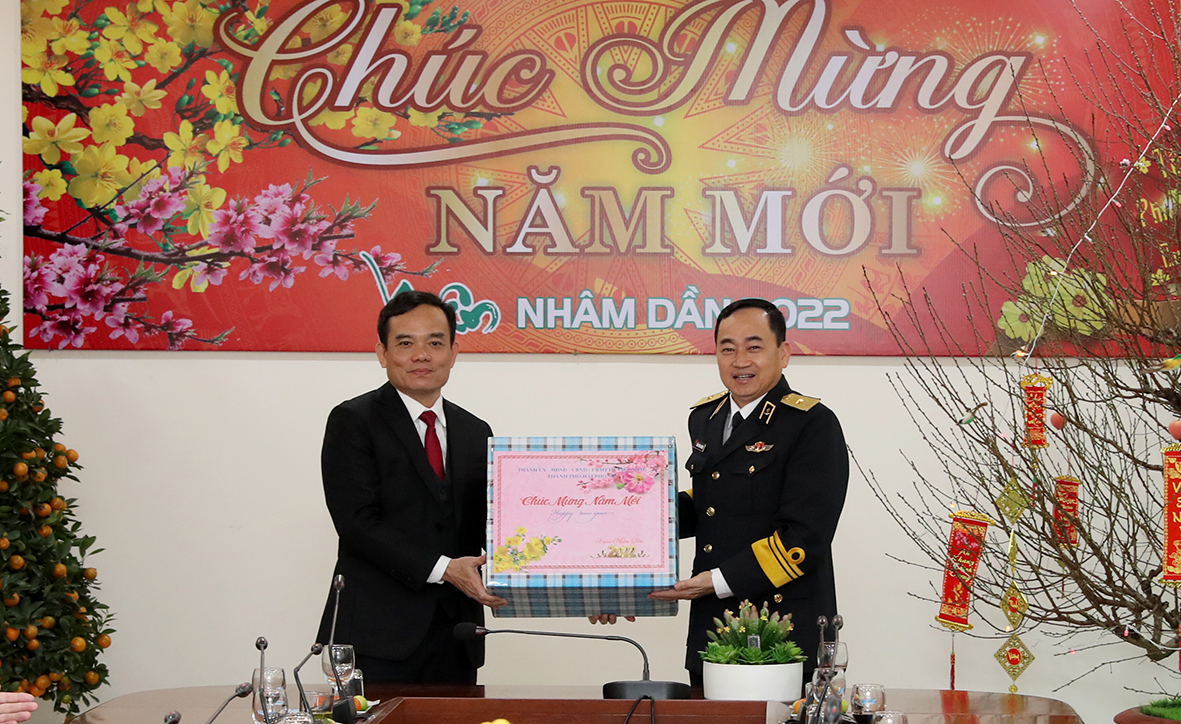 Nhân dịp đón xuân Nhâm Dần 2022, đồng chí Bí thư Thành ủy Hải Phòng chúc cán bộ, chiến sĩ Quân chủng Hải quân mạnh khỏe, đoàn kết, hoàn thành tốt nhiệm vụ bảo vệ chủ quyền biển, đảo của Tổ quốc.