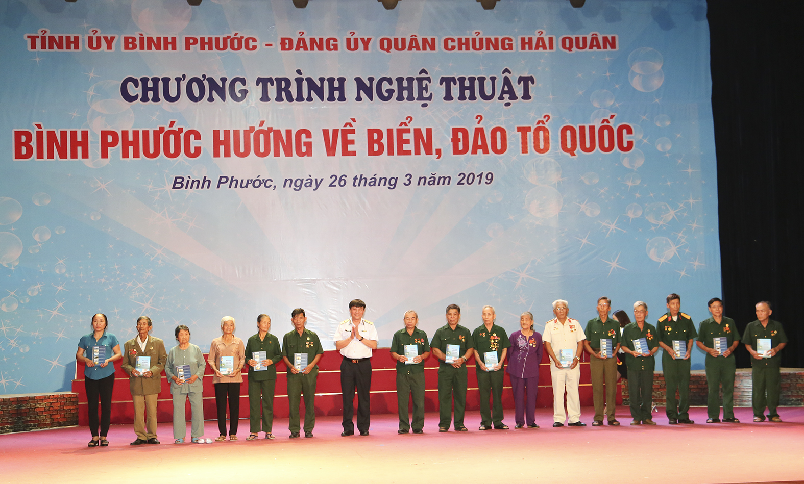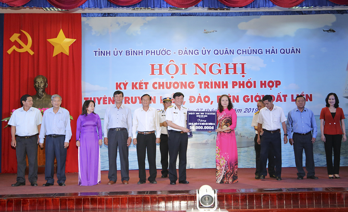 Trong chuỗi các hoạt động của Chương trình phối hợp tuyên truyền biển, đảo, biên giới đất liền giữa Tỉnh uỷ Bình Phước và Đảng uỷ Quân chủng Hải quân, đoàn công tác của Quân chủng Hải quân đã tặng quà 20 gia đình chính sách tiêu biểu của tỉnh Bình Phước, mỗi phần quà trị giá 5 triệu đồng; Vùng 4 Hải quân đã tặng quà 10 học sinh có hoàn cảnh khó khăn, học giỏi, mỗi phần quà trị giá 2 triệu đồng.