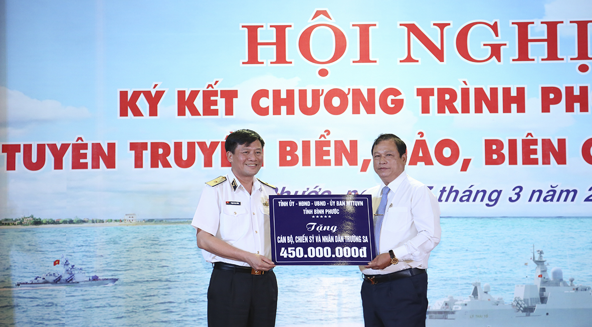 Tại hội nghị, Tỉnh uỷ, HĐND, UBND, UBMTTQ tỉnh Bình Phước và các địa phương trong tỉnh đã gửi tặng cán bộ, chiến sĩ và nhân dân huyện Trường Sa, tỉnh Khánh Hoà số tiền 1 tỉ đồng.