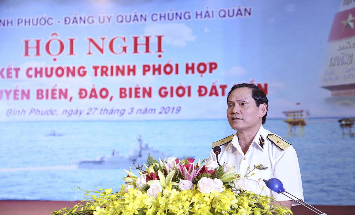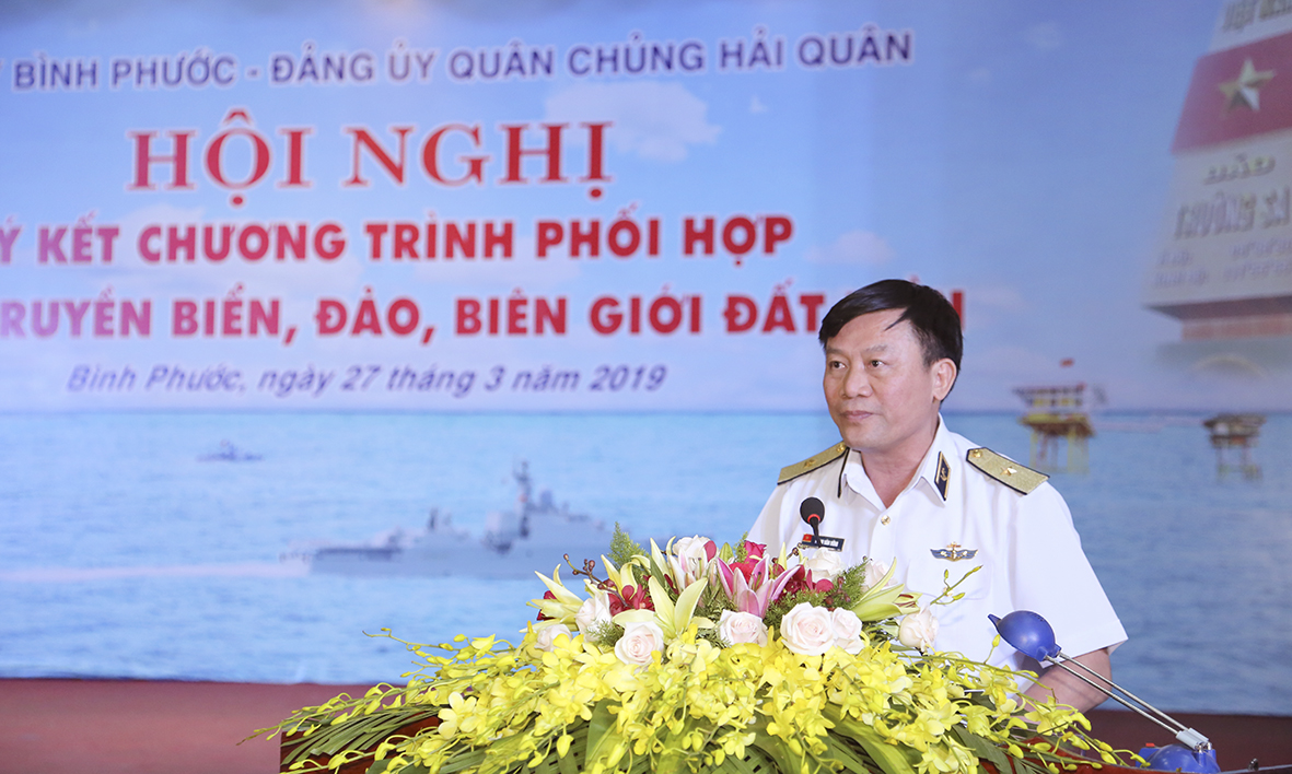 Tại hội nghị, Chuẩn Đô đốc Phạm Văn Luyện báo cáo nội dung Chương trình phối hợp tuyên truyền biển, đảo, biên giới đất liền giữa Tỉnh uỷ Bình Phước và Đảng uỷ Quân chủng Hải quân gồm 4 nhóm hoạt động chính.