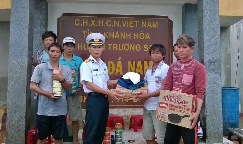Chỉ huy đảo Đá Nam tặng quà cho các ngư dân