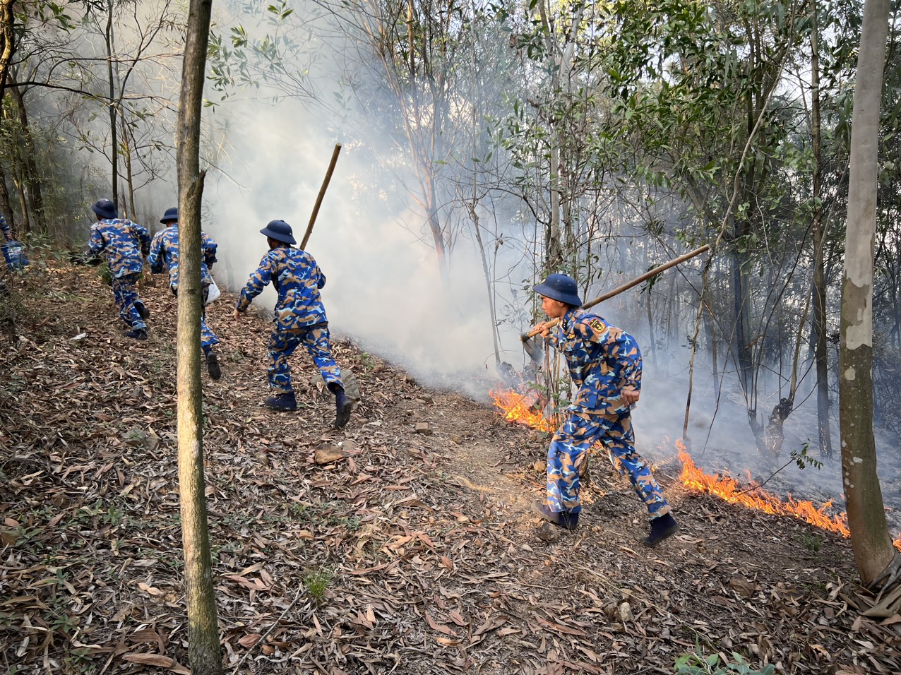 Đám cháy xảy ra trong điều kiện trời rét, hanh khô, gió mạnh, có nhiều lá cây khô nên đã lan ra diện rộng, địa bàn tiếp cận khó khăn, song cán bộ, chiến sĩ cùng với các lực lượng đã khoanh vùng, dập lửa, khống chế hoàn toàn đám cháy.