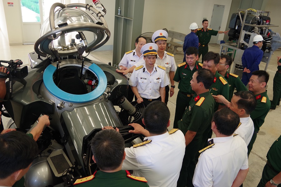 Đoàn khảo sát tại Trung tâm cứu nạn tàu ngầm