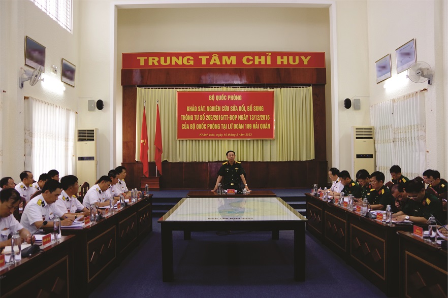 Ngày 10/5, tại TP. Cam Ranh, tỉnh Khánh Hòa, đoàn công tác của Bộ Quốc phòng do Đại tá Đỗ Văn Hậu, Phó Cục trưởng Cục Quân nhu, Tổng cục Hậu cần làm trưởng đoàn đã kiểm tra, đánh giá thực trạng công tác bảo đảm quân nhu; khảo sát sửa đổi, bổ sung Thông tư số 205 của Bộ Quốc phòng quy định tiêu chuẩn định lượng ăn; quân trang nhiệm vụ, quân trang tăng thêm… (Thông tư 205) tại Lữ đoàn 189 Hải quân.