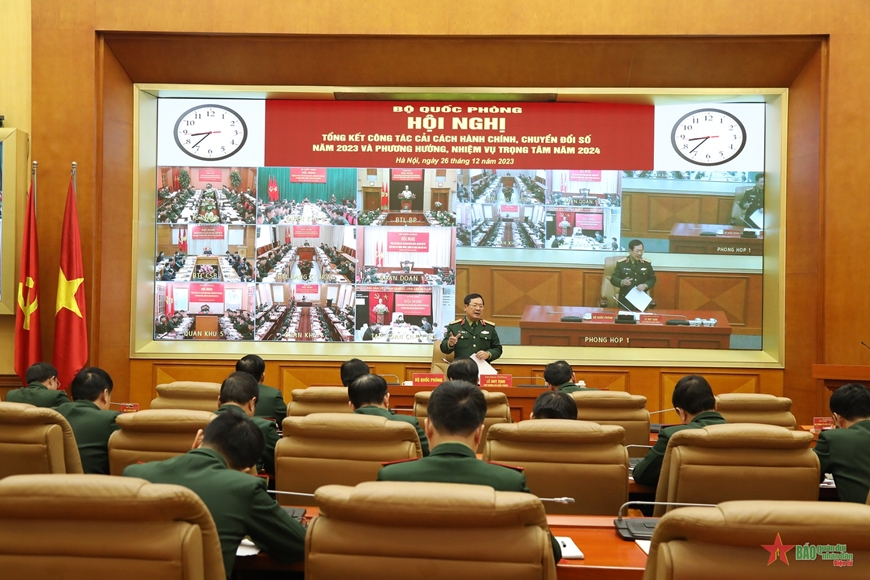 Ngày 26/12, tại Hà Nội, Bộ Quốc phòng tổ chức Hội nghị tổng kết công tác cải cách hành chính, chuyển đổi số (CCHC, CĐS) năm 2023 và phương hướng, nhiệm vụ trọng tâm năm 2024. Hội nghị được tổ chức theo hình thức trực tiếp và trực tuyến tại 48 điểm cầu trong toàn quân. Thượng tướng Lê Huy Vịnh, Ủy viên Trung ương Đảng, Thứ trưởng Bộ Quốc phòng, Phó trưởng ban Thường trực, Ban chỉ đạo CCHC, CĐS Bộ Quốc phòng chủ trì hội nghị.