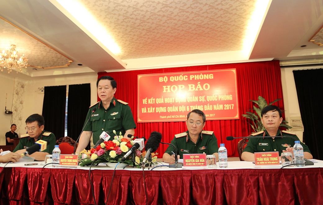 Sáng 13-7, tại TP. Hồ Chí Minh, Bộ Quốc phòng tổ chức họp báo giới thiệu về kết quả hoạt động quân sự, quốc phòng, xây dựng Quân đội trong 6 tháng đầu năm 2017. Trung tướng Nguyễn Trọng Nghĩa, Ủy viên Trung ương Đảng, Ủy viên Quân ủy Trung ương, Phó Chủ nhiệm Tổng cục Chính trị chủ trì buổi họp báo.