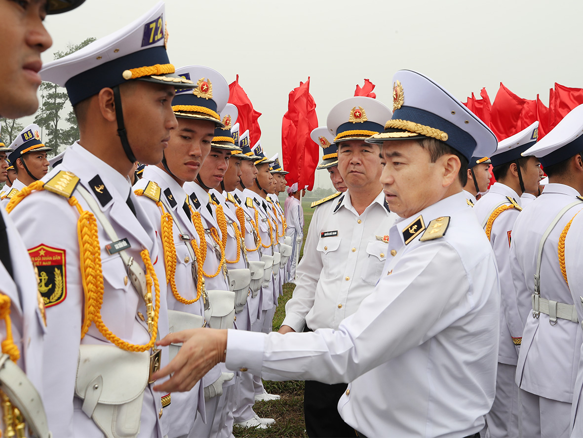 Đại tướng Phan Văn Giang và Đại tướng Nguyễn Tân Cương kiểm tra lễ tiết tác phong khối sĩ quan Hải quân