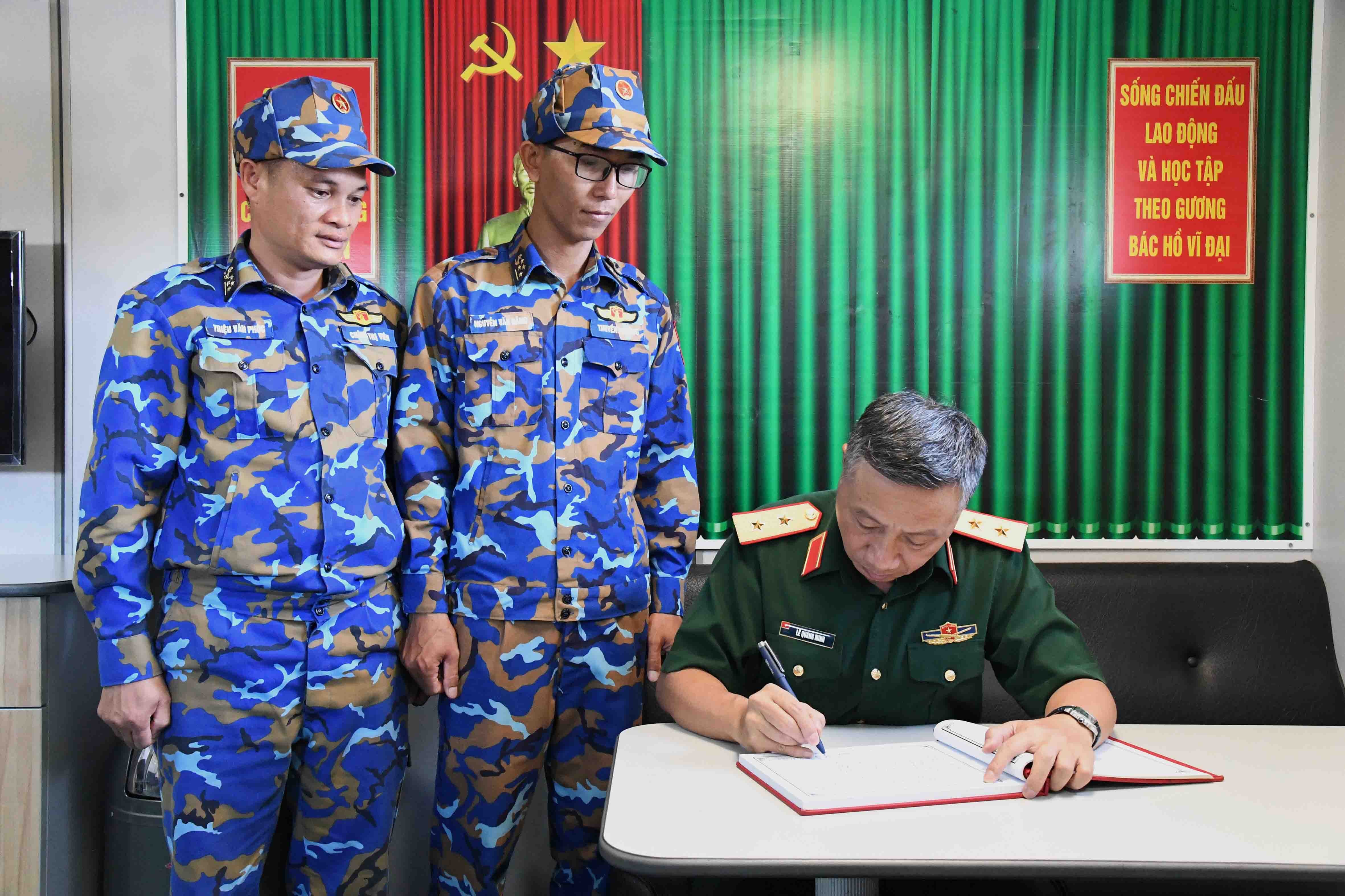 Trung tướng Lê Quang Minh ghi sổ lưu niệm của Tàu 526