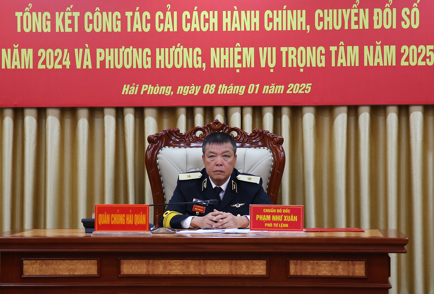 Đóng góp vào kết quả chung của BQP, năm 2024, Ban chỉ đạo CCHC, CĐS Quân chủng Hải quân đã tham mưu cho Thường vụ Đảng ủy, thủ trưởng Bộ Tư lệnh Hải quân lãnh đạo, chỉ đạo, triển khai thực hiện nghiêm túc, chặt chẽ, toàn diện, đồng bộ, hoàn thành tốt các nội dung của công tác CCHC, CĐS theo kế hoạch đề ra.