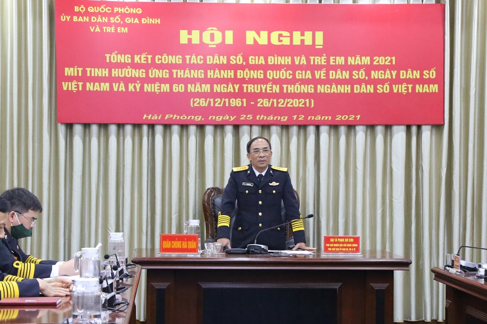 Tham luận tại hội nghị, Đại tá Phạm Chí Sơn, Phó Chủ nhiệm Hậu cần Hải quân nhất trí cao với Báo cáo tổng kết của Ủy ban DS,GĐ&TE Bộ Quốc phòng cùng ý kiến phát biểu của các đồng chí tại các điểm cầu. Đồng chí Phó Chủ nhiệm Hậu cần Hải quân nhấn mạnh: Năm 2021, Ủy ban DS,GĐ&TE Quân chủng Hải quân luôn bám sát sự chỉ đạo, hướng dẫn của Ủy ban DS,GĐ&TE Bộ Quốc phòng. Công tác DS,GĐ&TE của Quân chủng đã được triển khai toàn diện trên tất cả các mặt công tác, đạt được nhiều kết quả tích cực, góp phần nâng cao chất lượng cuộc sống của mỗi gia đình cán bộ, nhân viên trong Quân chủng.