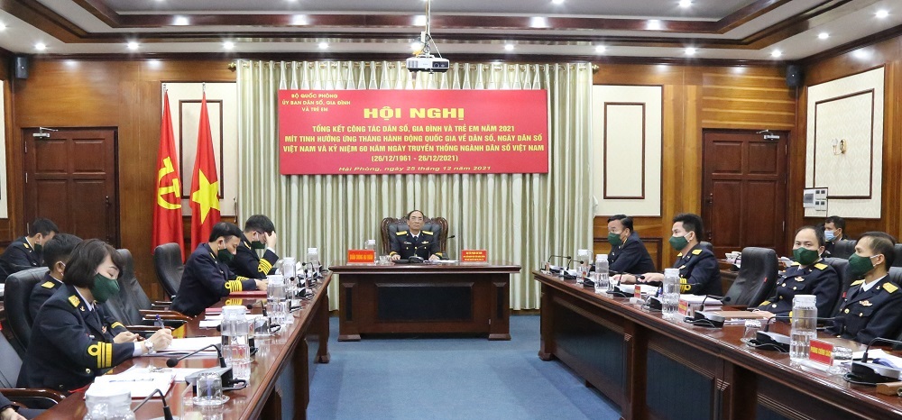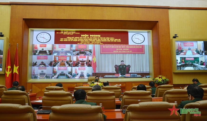 Sáng 25/12, Ủy ban Dân số, Gia đình và Trẻ em (DS,GĐ&TE) Bộ Quốc phòng tổ chức Hội nghị trực tuyến Tổng kết công tác DS,GĐ&TE năm 2021; mít tinh hưởng ứng Tháng hành động Quốc gia về dân số, Ngày dân số Việt Nam và kỷ niệm 60 năm Ngày truyền thống ngành dân số Việt Nam (26/12/1961 - 26/12/2021). Thượng tướng Lê Huy Vịnh, Thứ trưởng Bộ Quốc phòng, Chủ tịch Ủy ban DS,GĐ&TE Bộ Quốc phòng chủ trì.