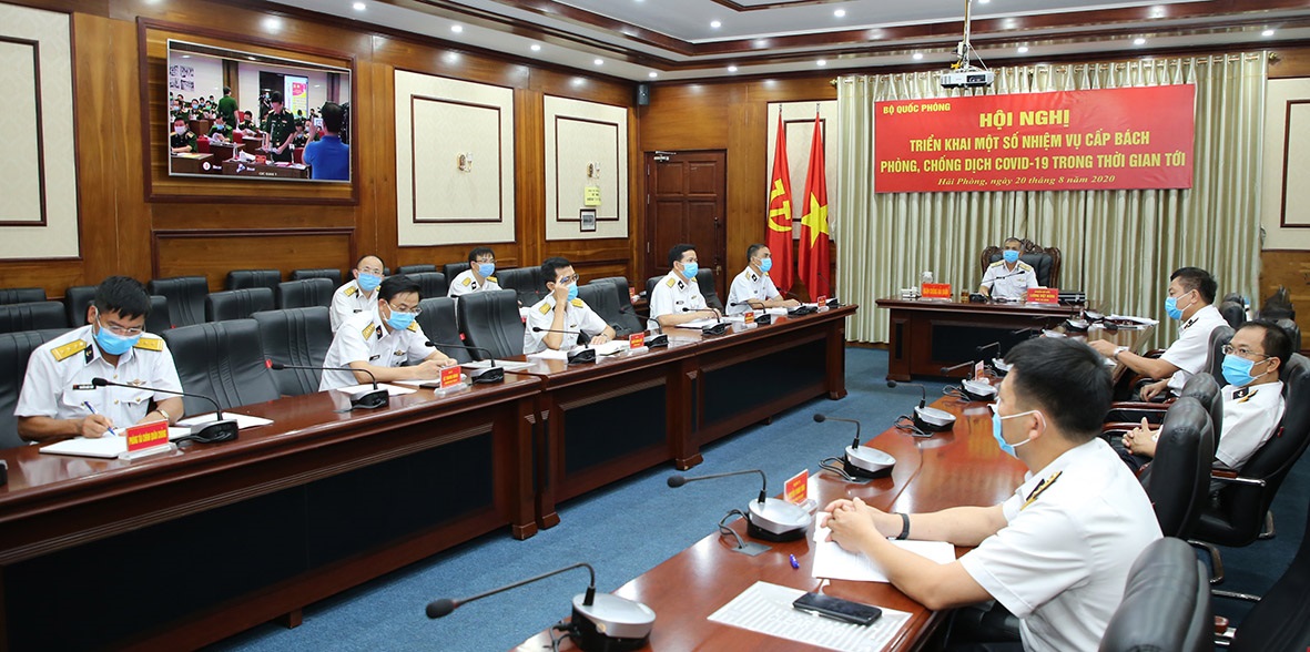 Chiều 20-8, Bộ Quốc phòng (BQP) tổ chức Hội nghị trực tuyến triển khai một số nhiệm vụ cấp bách phòng, chống dịch Covid-19 trong thời gian tới. Thượng tướng Trần Đơn, Ủy viên Trung ương Đảng, Ủy viên Thường vụ Quân ủy Trung ương, Thứ trưởng BQP, Trưởng ban chỉ đạo phòng, chống dịch Covid-19 BQP chủ trì. Chuẩn Đô đốc Lương Việt Hùng, Phó Tư lệnh Hải quân chủ trì tại điểm cầu Bộ Tư lệnh Hải quân.