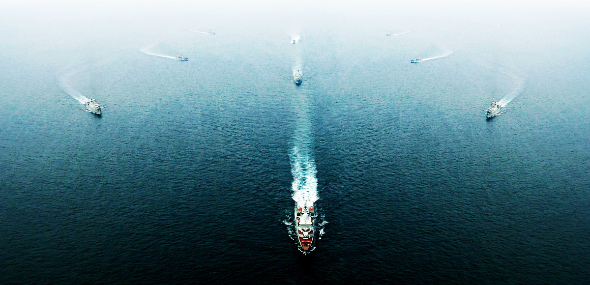 Các tàu Vùng 4 Hải quân diễu duyệt trên biển. Ảnh: Đức Thu