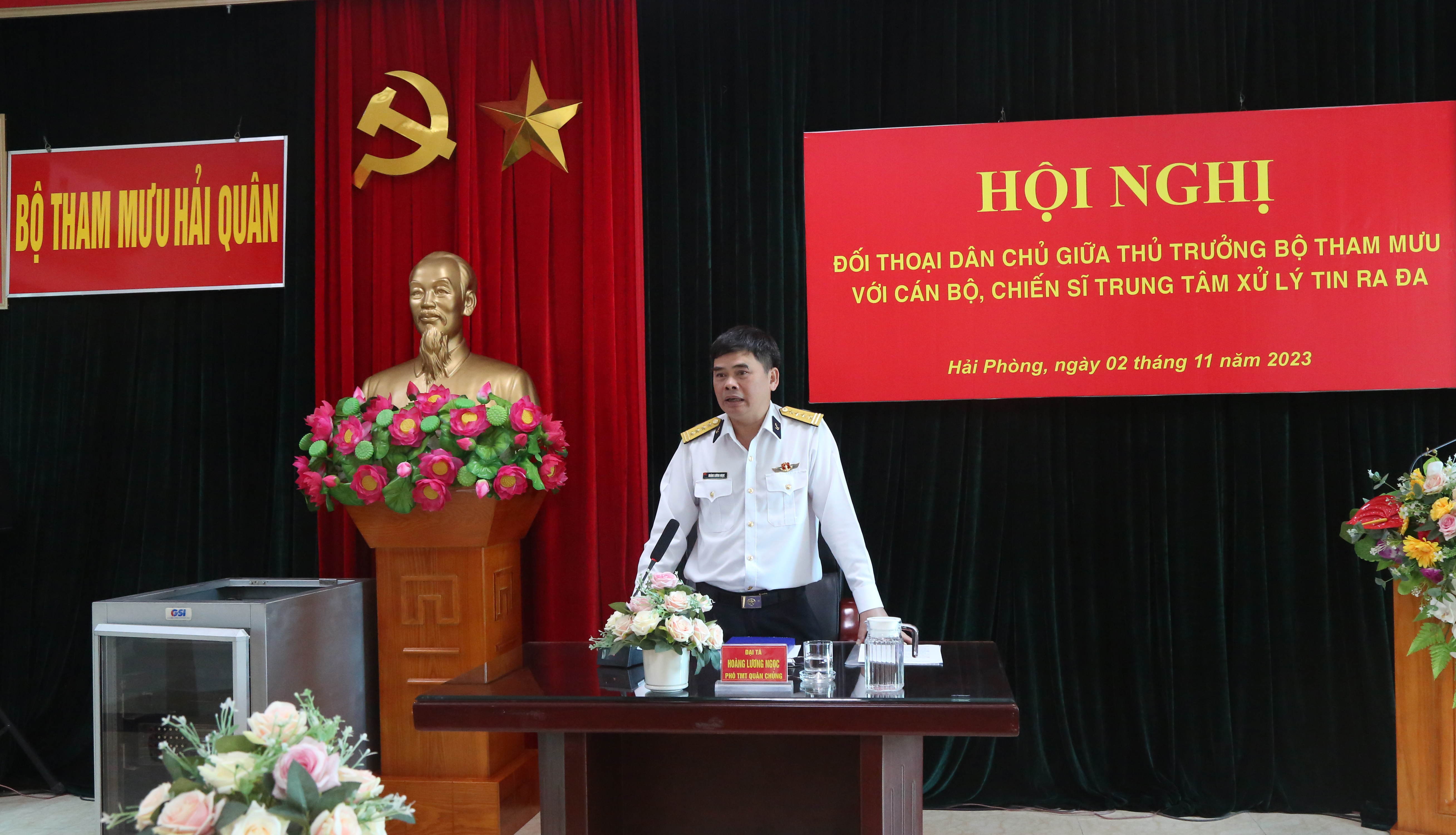 Sáng 2/11, tại Hải Phòng, Bộ Tham mưu tổ chức Hội nghị đối thoại dân chủ giữa thủ trưởng Bộ Tham mưu với cán bộ, chiến sĩ Trung tâm Xử lý tin ra đa. Đại tá Hoàng Lương Ngọc, Phó Tham mưu trưởng Hải quân, Bí thư Đảng ủy Bộ Tham mưu chủ trì. Cùng dự có đại biểu các cơ quan chức năng Bộ Tham mưu, chỉ huy và cán bộ, nhân viên trong đơn vị.