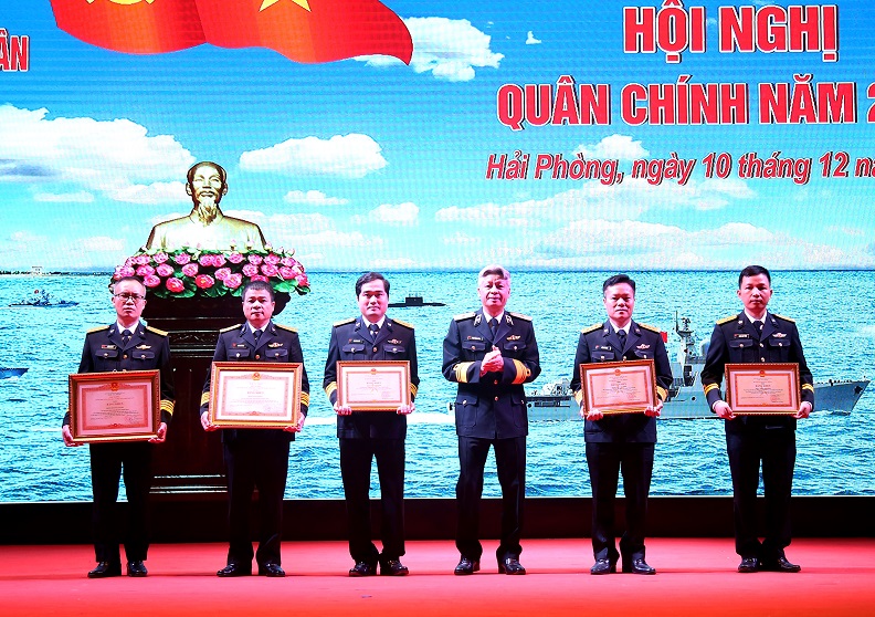Thừa ủy quyền của Thủ tướng Chính phủ và Bộ trưởng Bộ Quốc phòng, Chuẩn Đô đốc Phạm Mạnh Hùng trao Bằng khen của Thủ tướng tặng 2 tập thể và Bằng khen của Bộ trưởng Bộ Quốc phòng tặng 3 cá nhân