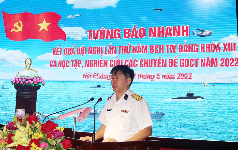 Ngày 31/5, tại Hải Phòng, Bộ Tham mưu Hải quân tổ chức thông báo kết quả Hội nghị lần thứ 5 Ban Chấp hành Trung ương Đảng Khóa XIII và học tập, nghiên cứu các chuyên đề giáo dục chính trị năm 2022. Hơn 500 cán bộ, đảng viên, quân nhân chuyên nghiệp các phòng, ban và đơn vị trực thuộc tham gia.