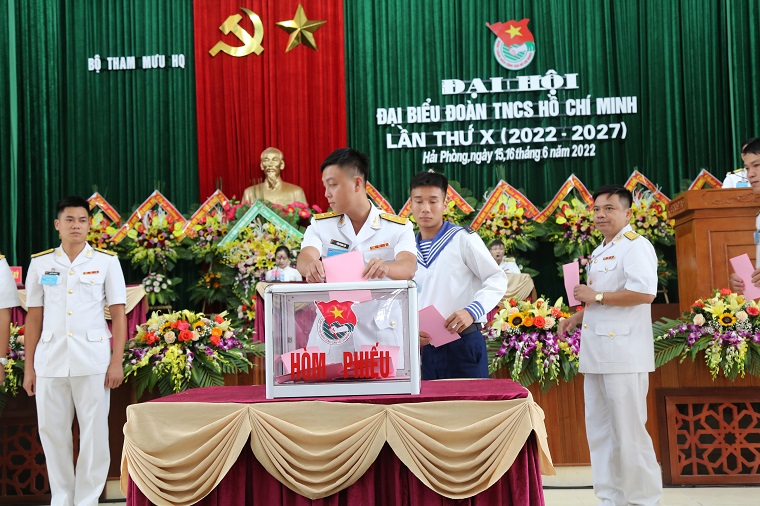 Bỏ phiếu bầu đại biểu dự Đại hội đại biểu Đoàn TNCS Hồ Chí Minh Quân chủng Hải quân lần thứ IX
