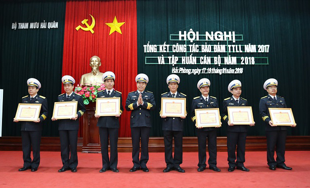 Thủ trưởng Bộ Tham mưu Hải quân trao thưởng cho các đơn vị hoàn thành xuất sắc nhiệm vụ năm 2017