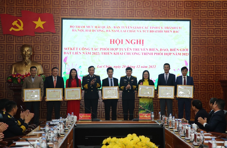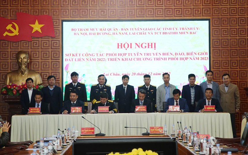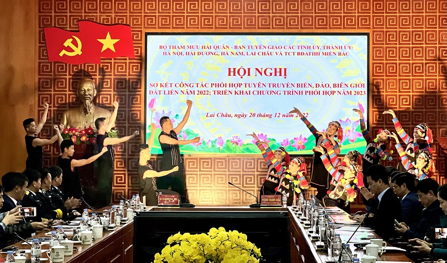 Ngày 20/12, tại TP. Lai Châu, tỉnh Lai Châu, Bộ Tham mưu Hải quân phối hợp với Ban Tuyên giáo Thành ủy, Tỉnh ủy: Hà Nội, Hà Nam, Hải Dương, Lai Châu và Tổng công ty Bảo đảm an toàn hàng hải miền Bắc tổ chức Hội nghị sơ kết công tác phối hợp tuyên truyền biển, đảo (TTBĐ), biên giới đất liền năm 2022; triển khai chương trình phối hợp hoạt động năm 2023.