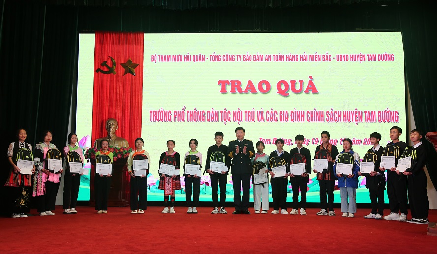 Dịp này, Bộ Tham mưu Hải quân đã thăm, tặng 16 phần quà, 1 máy tính, 1 máy chiếu, 1 tạ lương khô và 100 đầu sách cho các cháu học sinh Trường Phổ thông dân tộc nội trú huyện Tam Đường, Trường Phổ thông dân tộc bán trú tiểu học Tả Lèng (xã Tả Lèng, huyện Tam Đường) và 10 gia đình chính sách của huyện Tam Đường, tỉnh Lai Châu.