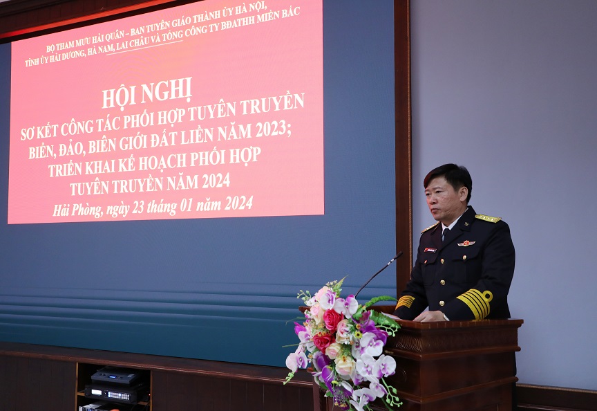 Chiều 23/1, tại Hải Phòng, Bộ Tham mưu Hải quân phối hợp với Ban Tuyên giáo các địa phương: Hà Nội, Hải Dương, Hà Nam, Lai Châu và Tổng công ty Bảo đảm an toàn hàng hải miền Bắc tổ chức Hội nghị sơ kết công tác phối hợp tuyên truyền biển, đảo, biên giới đất liền (TTBĐ, BGĐL) năm 2023 và triển khai kế hoạch phối hợp hoạt động năm 2024.