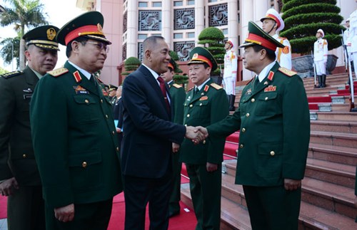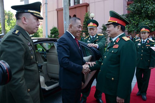 Bộ trưởng Ngô Xuân Lịch chào mừng thành viên đoàn đại biểu cấp cao Bộ Quốc phòng In-đô-nê-xi-a đến thăm Việt Nam