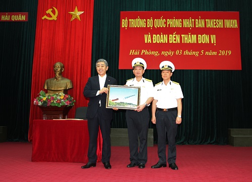 Trong khuôn khổ chuyến thăm hữu nghị chính thức Việt Nam, ngày 3-5, tại Hải Phòng, ngài Takeshi Iwaya, Bộ trưởng Bộ Quốc phòng Nhật Bản dẫn đầu đoàn cán bộ cấp cao Bộ Quốc phòng Nhật Bản đã đến thăm và làm việc với Hải quân nhân dân Việt Nam.