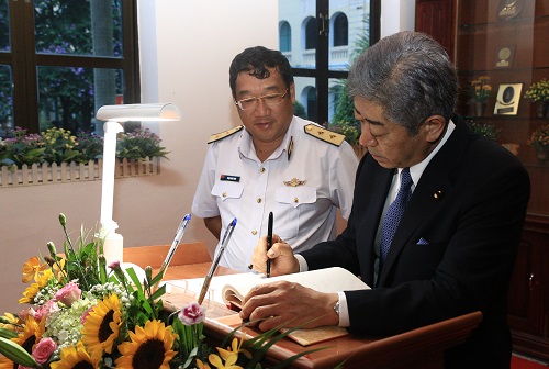 Ngài Takeshi Iwaya ký tên vào Sổ vàng của Hải quân Việt Nam