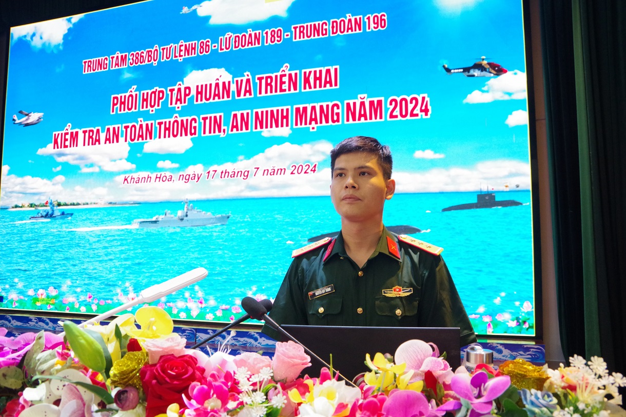 Ngày 17/7, tại TP. Cam Ranh, tỉnh Khánh Hòa, Trung tâm 386, Bộ Tư lệnh 86 phối hợp tổ chức tập huấn và kiểm tra an toàn thông tin, an ninh mạng các trang thiết bị công nghệ thông tin (CNTT) cho các đồng chí sĩ quan thuộc Tổ an toàn thông tin các cơ quan, đơn vị trực thuộc Lữ đoàn 189 và Trung đoàn 196.