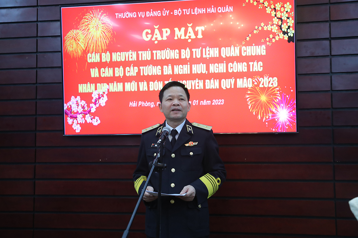 Chiều 9/1, tại Hải Phòng, Thường vụ Đảng ủy, Bộ Tư lệnh Hải quân tổ chức gặp mặt cán bộ nguyên thủ trưởng Bộ Tư lệnh Quân chủng và cán bộ cấp tướng đã nghỉ hưu, nghỉ công tác nhân dịp năm mới và đón Tết nguyên đán Quý Mão 2023.