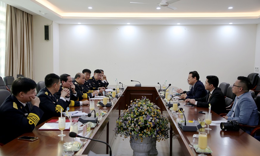 Chuẩn Đô đốc Đỗ Văn Yên, Phó Chính ủy Hải quân chủ trì tiếp đoàn. Cùng dự có Chuẩn Đô đốc Phạm Văn Luyện, Phó Chủ nhiệm Chính trị Hải quân và đại diện một số cơ quan Bộ Tư lệnh Hải quân.
