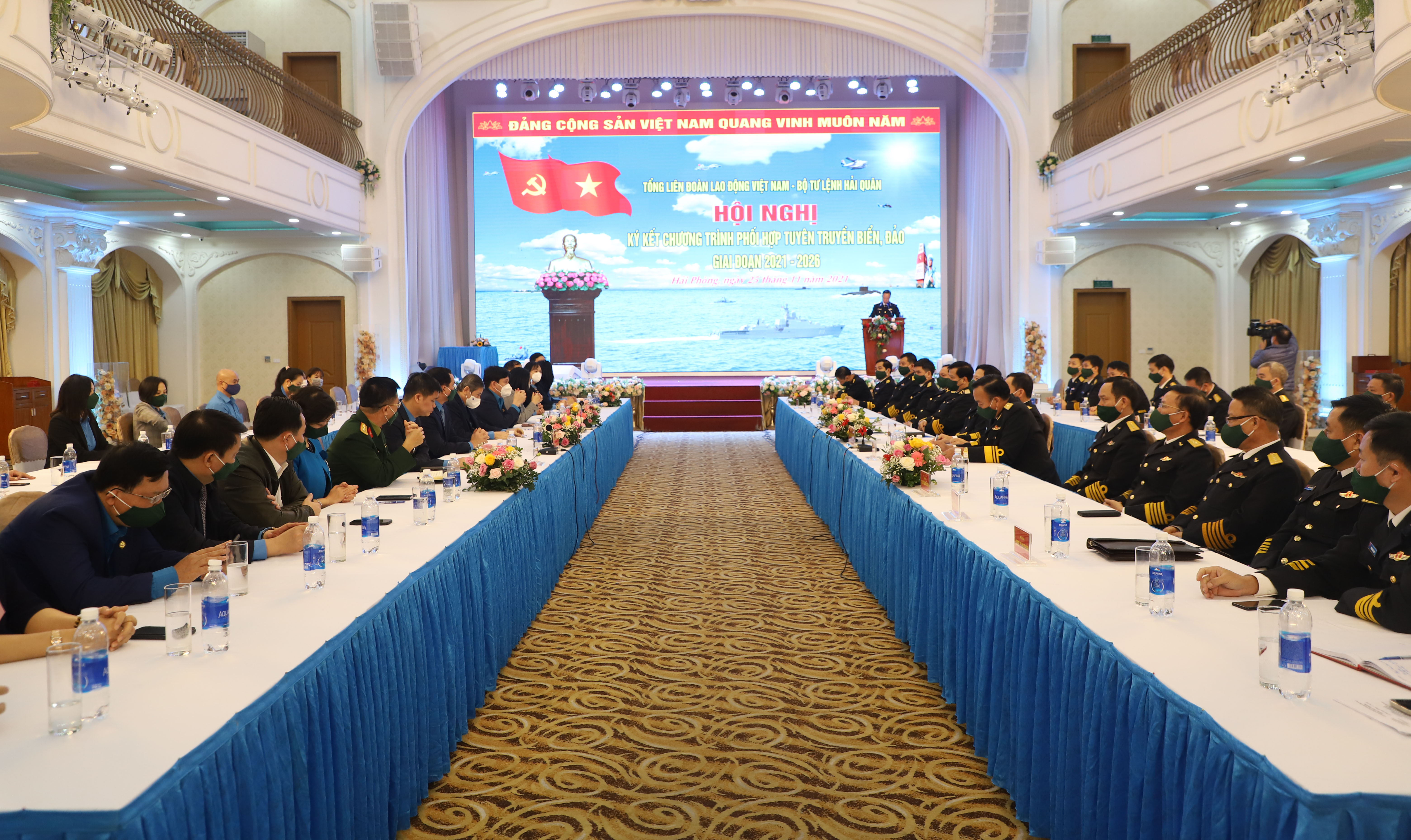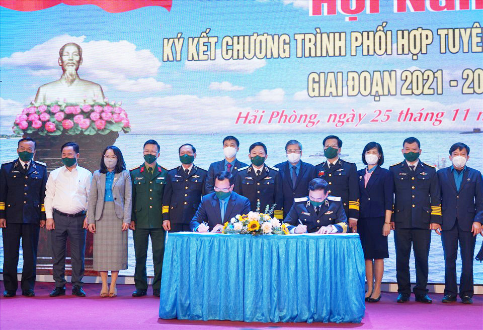 Chiều 25/11, tại Hải Phòng, Bộ Tư lệnh Hải quân và Tổng Liên đoàn Lao động (LĐLĐ) Việt Nam tổ chức Hội nghị ký kết Chương trình phối hợp tuyên truyền biển, đảo giai đoạn 2021-2026.