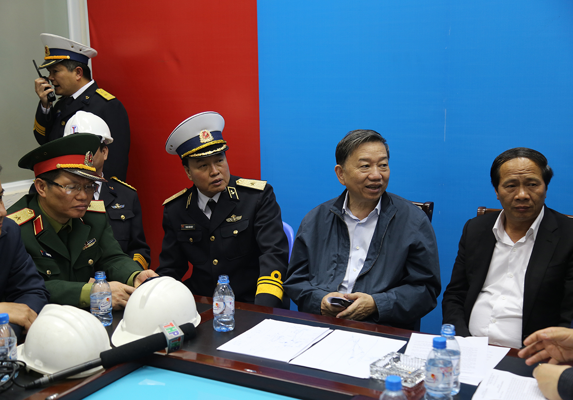 Đến 20 giờ 40, Bộ trưởng Bộ Công an Tô Lâm trực tiếp cùng lãnh đạo TP. Hải Phòng, các cơ quan chức năng của Bộ Quốc phòng: Cục Cứu hộ Cứu nạn, Bộ Tư lệnh Hải quân, Bộ Tư lệnh Cảnh sát biển... chỉ đạo cứu Tàu Hải Hà 18.