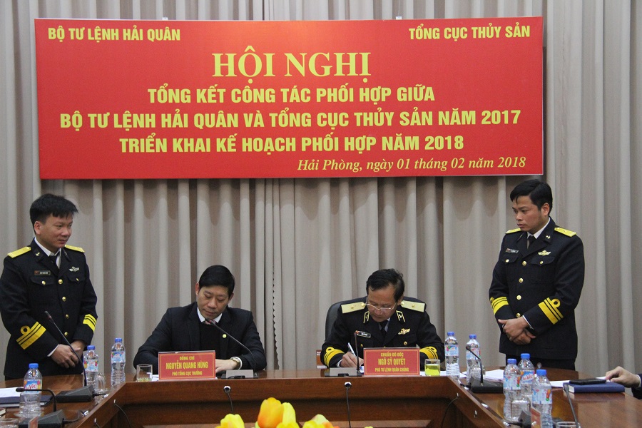 Ngày 1-2, tại Hải Phòng, Bộ Tư lệnh Hải quân và Tổng cục Thủy sản tổ chức Hội nghị Tổng kết công tác phối hợp năm 2017, triển khai kế hoạch năm 2018. Chuẩn Đô đốc Ngô Sỹ Quyết, Phó Tư lệnh Hải quân và đồng chí Nguyễn Quang Hùng, Phó Tổng cục trưởng Tổng cục Thủy sản chủ trì hội nghị.