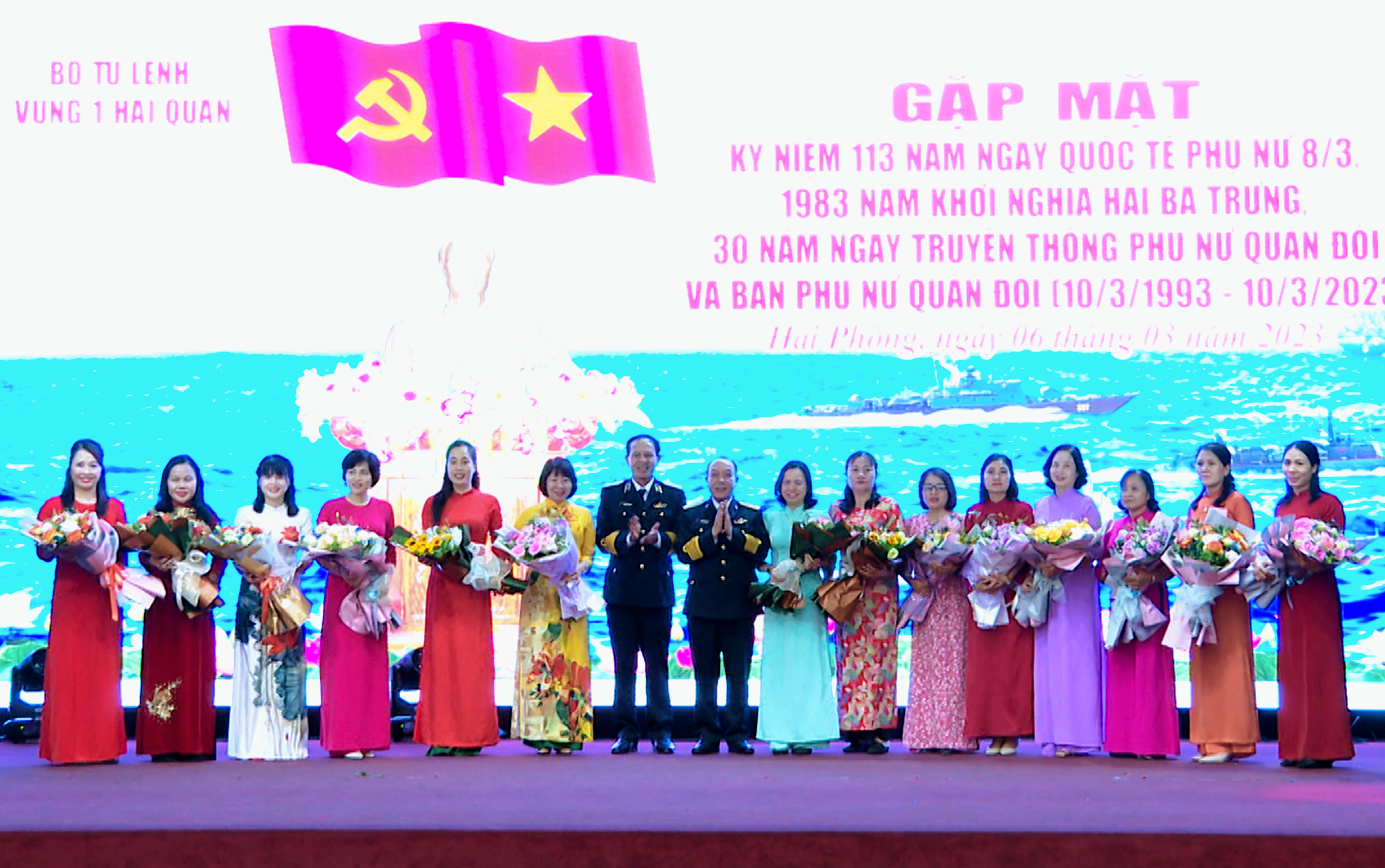 Chiều 6/3, tại Hải Phòng, Bộ Tư lệnh Vùng 1 Hải quân tổ chức gặp mặt cán bộ, hội viên phụ nữ nhân dịp kỷ niệm 113 năm Ngày quốc tế phụ nữ, 1983 năm khởi nghĩa Hai Bà Trưng, 30 năm Ngày truyền thống phụ nữ quân đội.