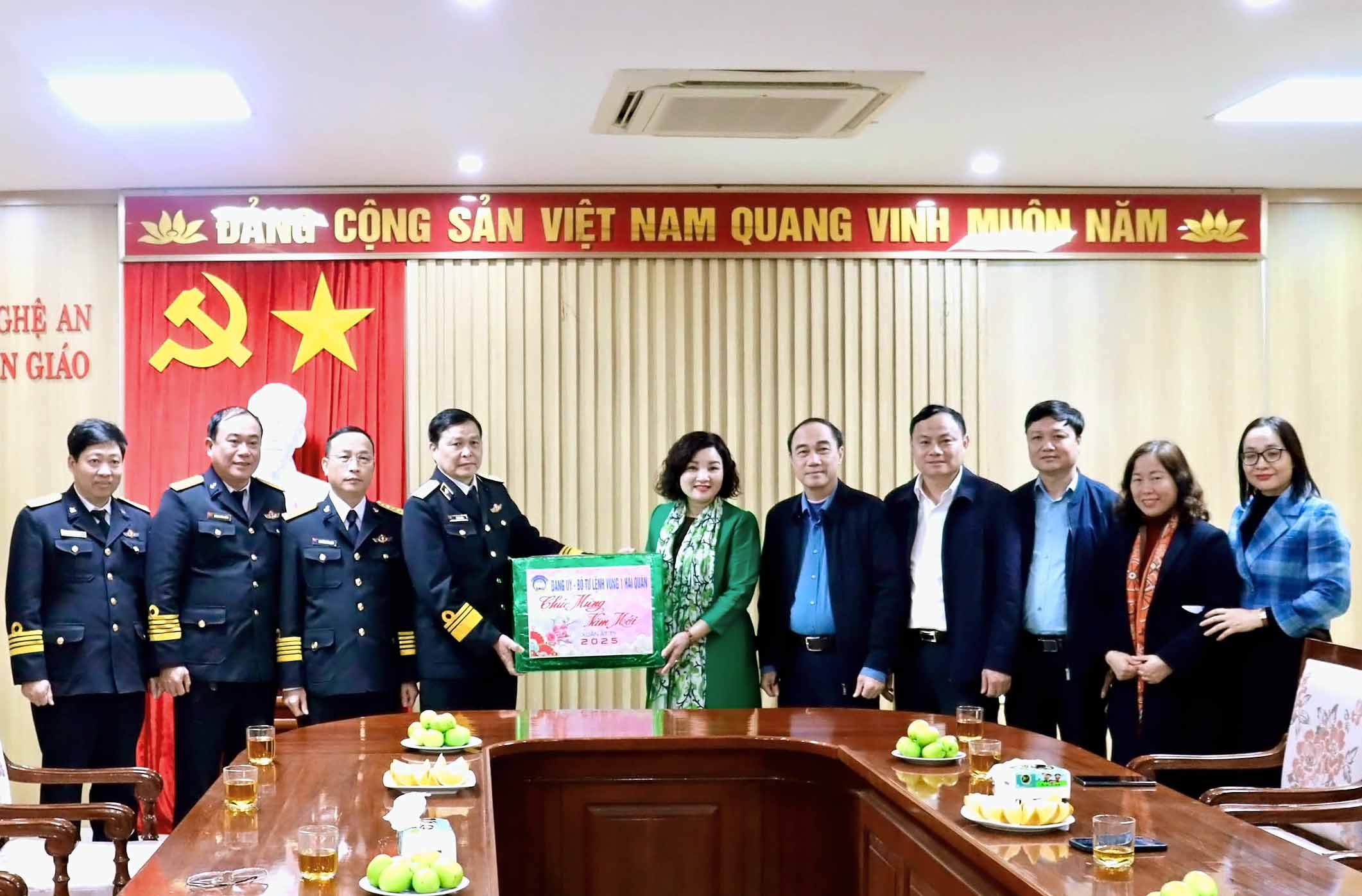Thay mặt Đảng uỷ, chỉ huy và cán bộ, chiến sĩ Vùng 1, đồng chí Tư lệnh Vùng gửi lời hỏi thăm, chúc tết tới toàn thể gia đình cán bộ, nhân viên Ban Tuyên giáo Tỉnh uỷ Nghệ An; đồng thời mong muốn lãnh đạo Ban Tuyên giáo và chính quyền địa phương tiếp tục quan tâm, giúp đỡ cán bộ, chiến sĩ Hải đội 137, Lữ đoàn 169 (Vùng 1) đóng quân trên địa bàn; tăng cường phối hợp hoạt động tuyên truyền biển đảo, đền ơn đáp nghĩa, bảo đảm an ninh quốc phòng...