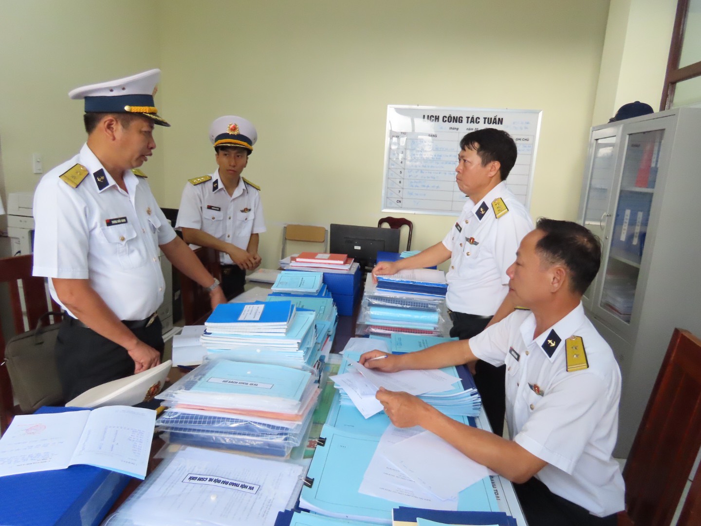 Kiểm tra sổ sách CTĐ, CTCT tại Trung tâm Bảo đảm kỹ thuật