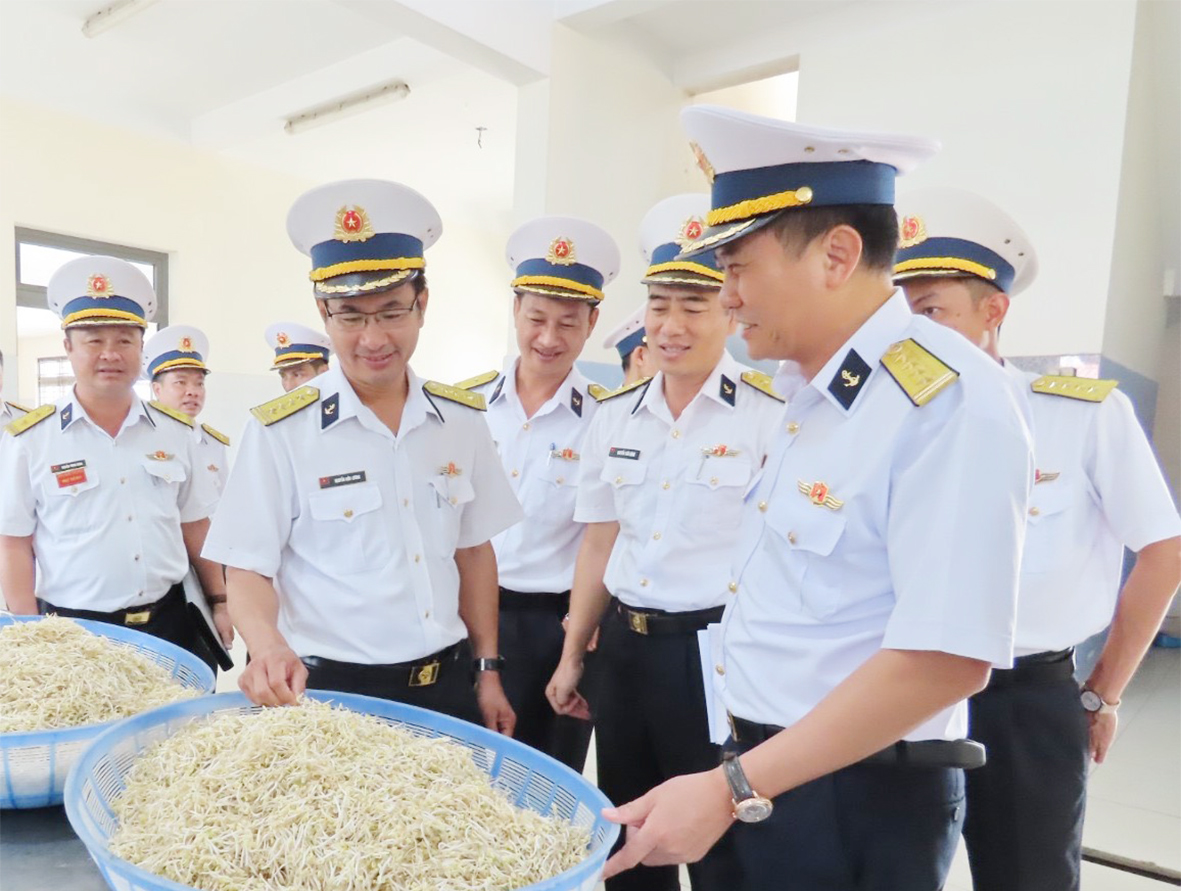 Đồng chí Phó Chính ủy Vùng kiểm tra khu chế biến tại nhà bếp đơn vị