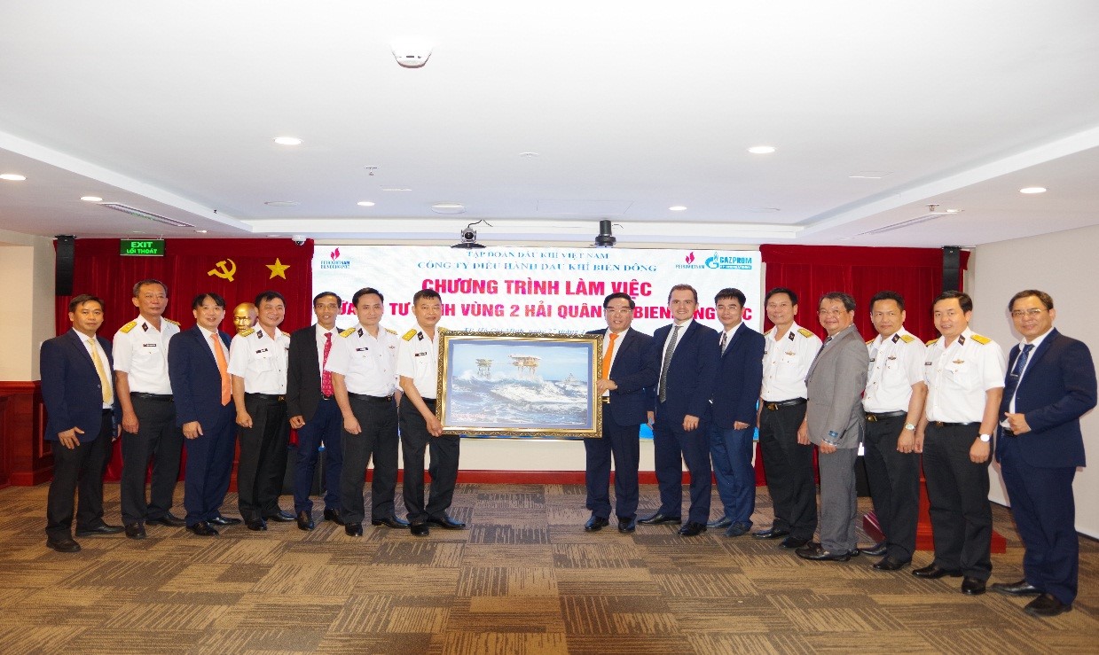 Đại tá Nguyễn Anh Tuấn, Tư lệnh Vùng 2 chúc mừng những thành công trong kết quả sản xuất, kinh doanh Quý I năm 2022 của BIENDONG POC và đánh giá cao mối quan hệ hợp tác tốt đẹp giữa hai đơn vị đồng thời nhấn mạnh Vùng 2 Hải quân luôn duy trì các lực lượng trực trên biển đảm bảo đáp ứng nhanh nhất yêu cầu chiến đấu bảo vệ chủ quyền biển, đảo được phân công, quản lý; hoạt động phối hợp giữa hai đơn vị còn là điểm tựa cho ngư dân trên vùng biển xa yên tâm vươn khơi, bám biển, bảo vệ ngư trường truyền thống.