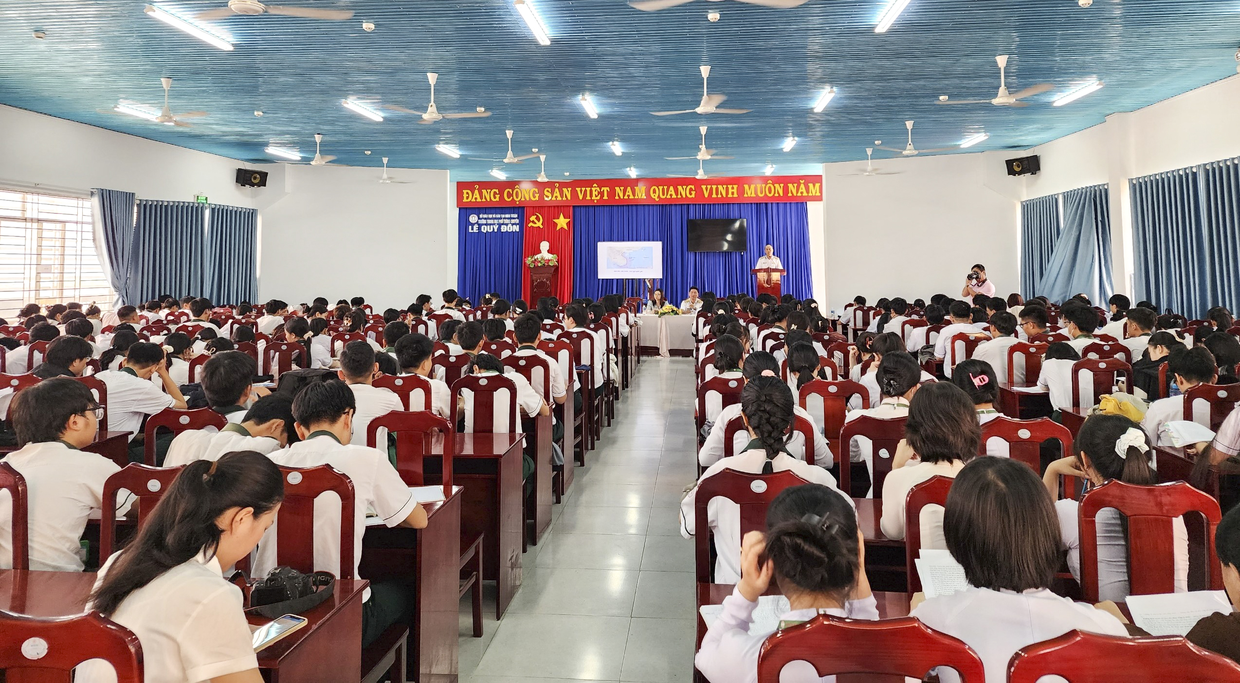 Ngày 22/4, Bộ Tư lệnh Vùng 4 Hải quân phối hợp với Ban Tuyên giáo Tỉnh ủy, Sở Giáo dục và Đào tạo tỉnh Ninh Thuận tổ chức Hội nghị tuyên truyền biển, đảo, thu hút nguồn nhân lực xây dựng Quân chủng Hải quân cho gần 500 học sinh khối 12 tại Trường THPT chuyên Lê Quý Đôn và Trường THPT Nguyễn Trãi trên địa bàn tỉnh Ninh Thuận.