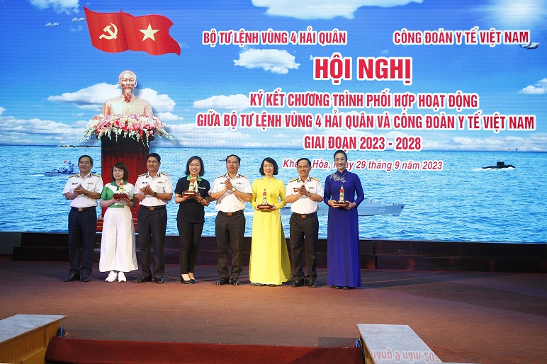 Chiều 29/9, tại TP.Cam Ranh, tỉnh Khánh Hòa, Bộ Tư lệnh Vùng 4 Hải quân và Công đoàn Y tế Việt Nam đã tổ chức hội nghị ký kết chương trình phối hợp hoạt động giai đoạn 2023-2028.