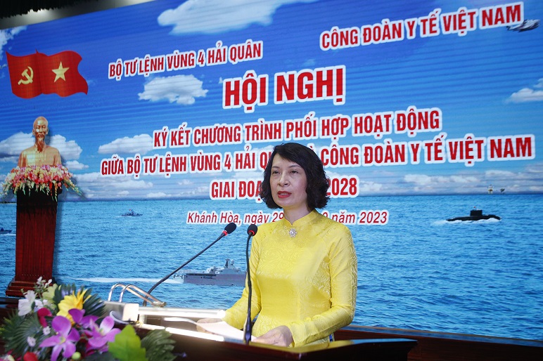 Phát biểu tại hội nghị, đồng chí Nguyễn Thị Liên Hương, Thứ trưởng Bộ Y tế nhấn mạnh: Việc ký kết chương trình phối hợp hoạt động giữa hai đơn vị sẽ giúp các đoàn viên công đoàn của ngành y tế hiểu rõ hơn vinh dự, nghĩa vụ và trách nhiệm của mình trong việc tham gia các chương trình với Bộ Tư lệnh Vùng 4. Các nội dung được ký kết rất ý nghĩa, góp phần thực hiện tốt công tác hậu phương quân đội, là nguồn cổ vũ, động viên cán bộ, chiến sĩ yên tâm công tác, bảo vệ vững chắc chủ quyền biển đảo Tổ quốc.