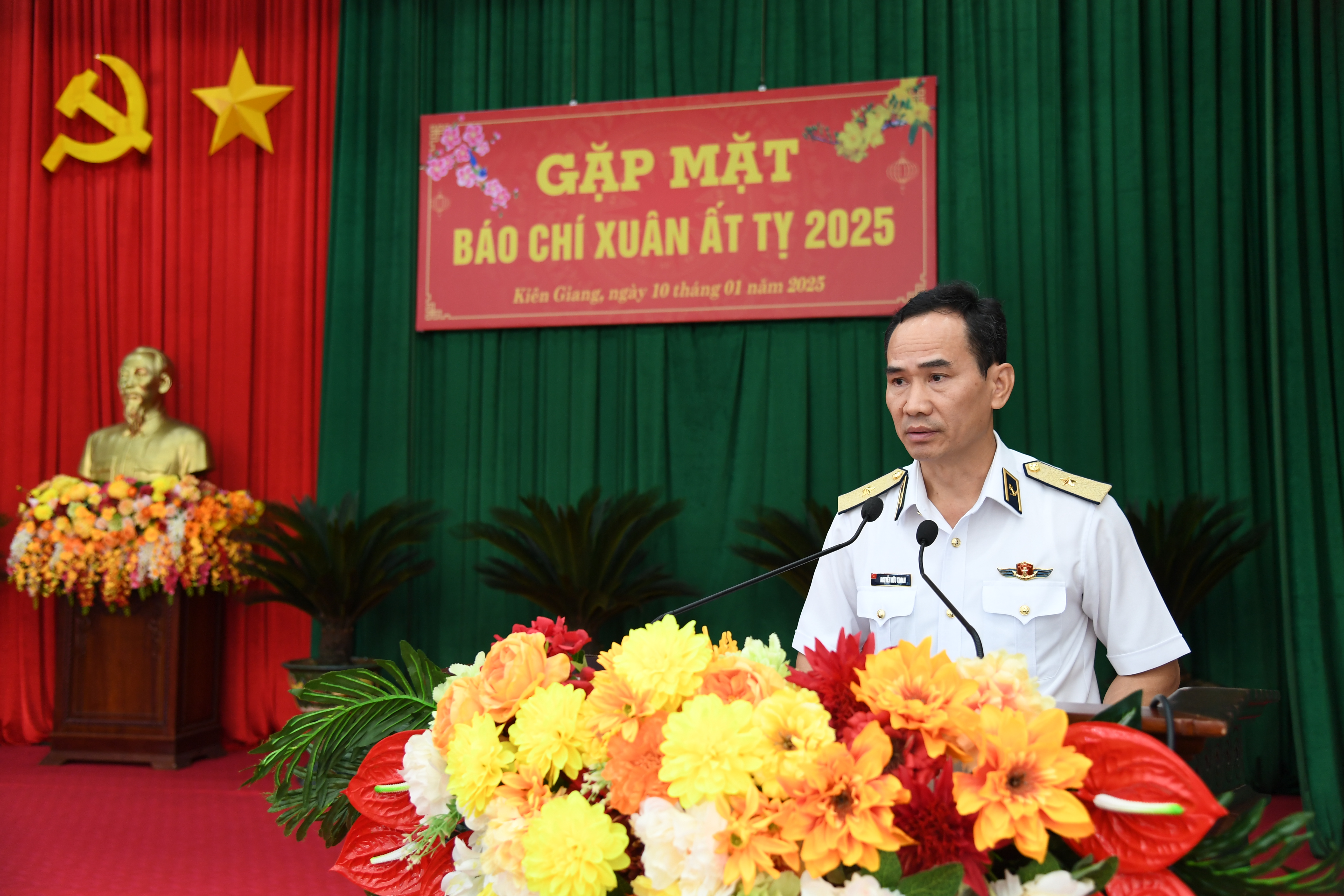 "Năm 2025, Bộ Tư lệnh Vùng 5 mong muốn các cơ quan báo chí tiếp tục quan tâm, phối hợp nhịp nhàng cùng đơn vị để làm tốt công tác tuyên truyền, nhất là công tác chuẩn bị và tổ chức đại hội đảng các cấp trong Đảng bộ Vùng. Đẩy mạnh tuyên truyền gương người tốt, việc tốt, điển hình tiên tiến trong các lĩnh vực. Tập trung tuyên truyền sâu rộng về bản lĩnh chính trị, ý chí quyết tâm, tinh thần chịu đựng gian khổ, khắc phục khó khăn của cán bộ, chiến sĩ; kết quả thực hiện nhiệm vụ huấn luyện, SSCĐ; tìm kiếm, cứu hộ, cứu nạn trên biển, giúp đỡ nhân dân khắc phục hậu quả thiên tai, dịch bệnh, bảo vệ môi trường; đặc biệt là kỷ niệm 50 năm thành lập Bộ Tư lệnh Vùng 5..." - Chuẩn Đô đốc Nguyễn Hữu Thoan nhấn mạnh.