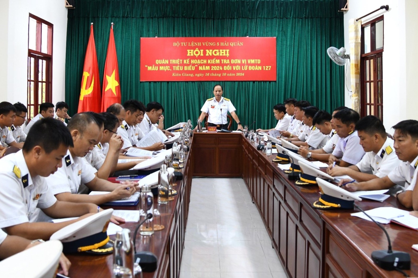 Từ ngày 14 đến 17/10, tại TP. Phú Quốc, tỉnh Kiên Giang, các đoàn công tác của Bộ Tư lệnh Vùng 5 Hải quân đã kiểm tra kết quả xây dựng đơn vị VMTD mẫu mực, tiêu biểu năm 2024 tại Lữ đoàn 127, Trung đoàn 551, Tiểu đoàn 563 và Tiểu đoàn 553.