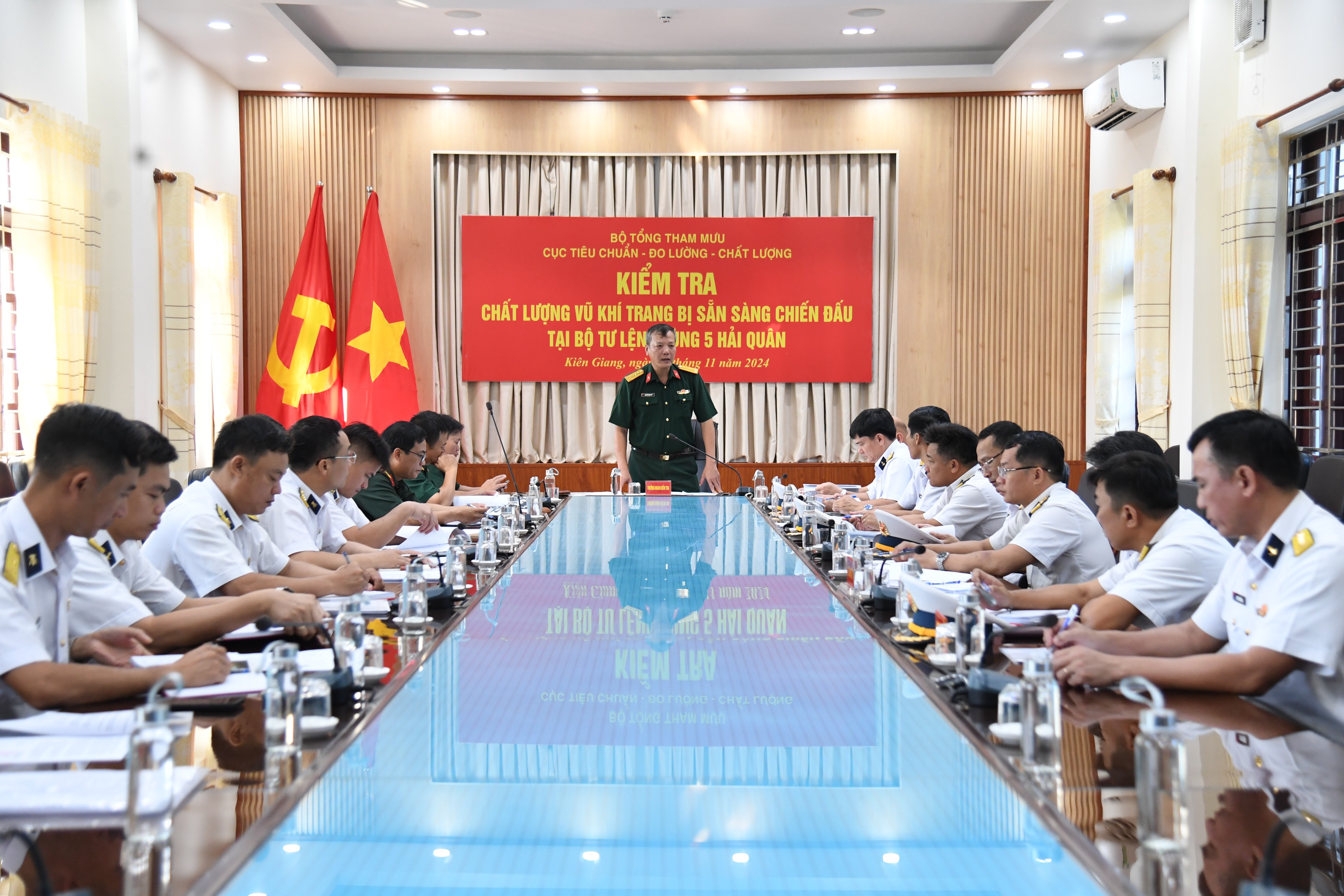 Ngày 19/11, tại TP. Phú Quốc, tỉnh Kiên Giang, đoàn công tác của Cục Tiêu chuẩn - Đo lường - Chất lượng, Bộ Tổng Tham mưu đã đến kiểm tra chất lượng vũ khí, trang bị SSCĐ tại Bộ Tư lệnh Vùng 5 Hải quân.