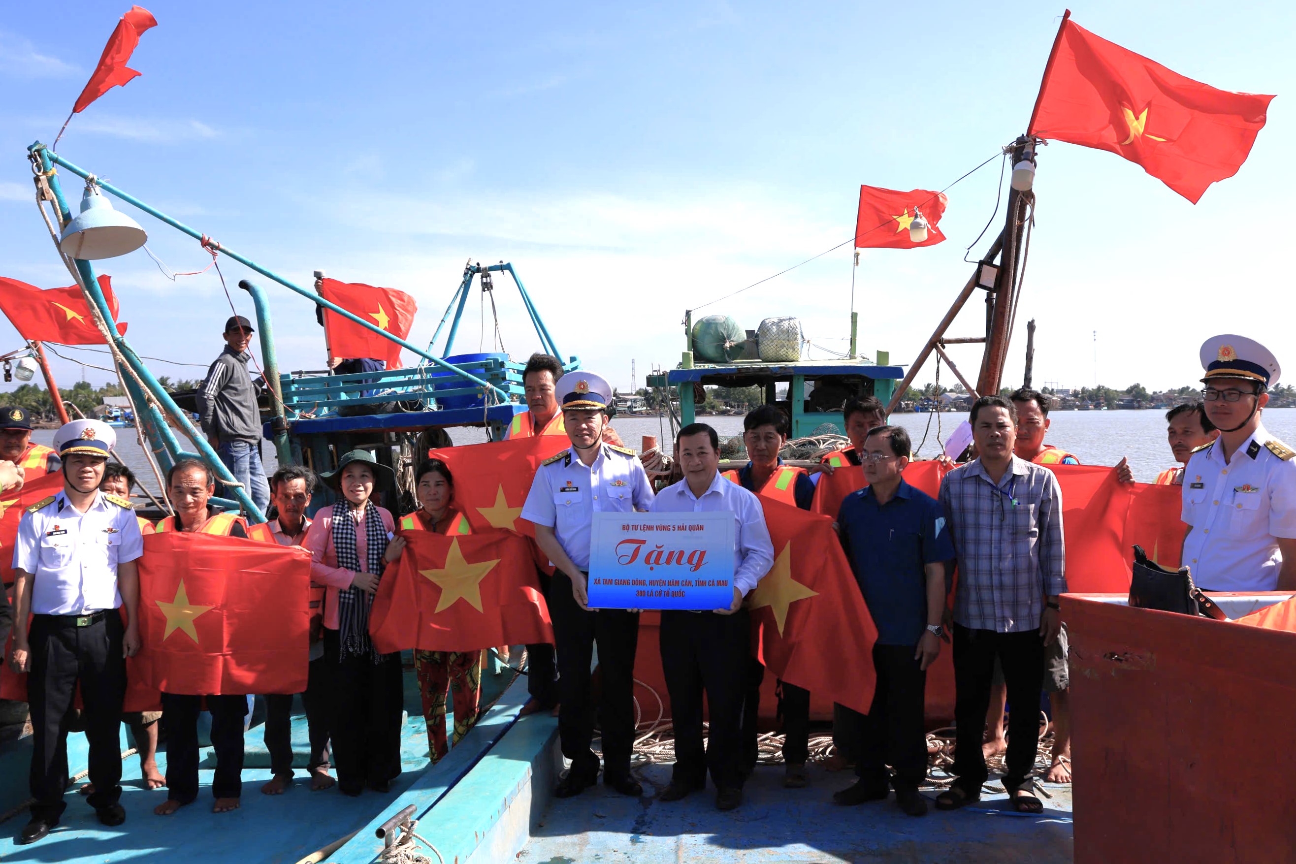 Bộ Tư lệnh Vùng 5 tặng ngư dân tỉnh Cà Mau 300 lá cờ Tổ quốc